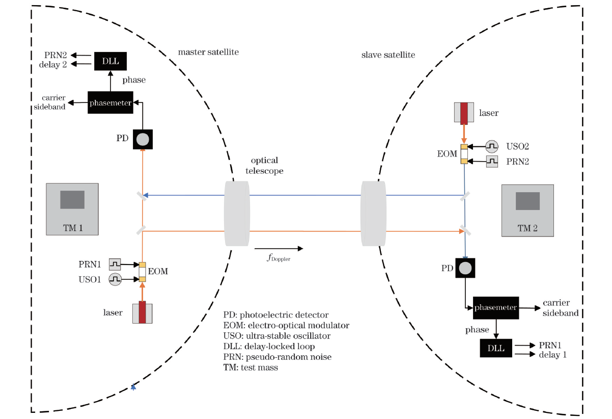 基于目前的相位测量系统,分析了时钟噪声传递的原理、需求和方案,设计了通信系统参数架构,依据太极计划技术指标要求进行耦合调制参数设计和分析。对于时钟噪声传递,本课题采用基于电光调制器的边带倍频时钟噪声传递方案,而对于通信系统,则采用基于伪随机码的直接序列扩频,通过二进制相移键控方式进行调制传递通信信息。通过仿真实验进行时钟信号与伪随机码耦合调制下的频谱分析,总结了主信号、边带信号、伪随机码旁瓣信噪比与调制深度之间的耦合关系,为光学实验提供指引。