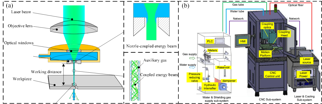 激光-水射流耦合传输是水导激光加工技术的核心环节,其传输效率与稳定性直接决定了加工效率、质量及工作距离等关键性能指标。该耦合传输过程主要涉及稳定微细水射流的形成、光源选择与光束整形以及光-水耦合与传输特征分析。