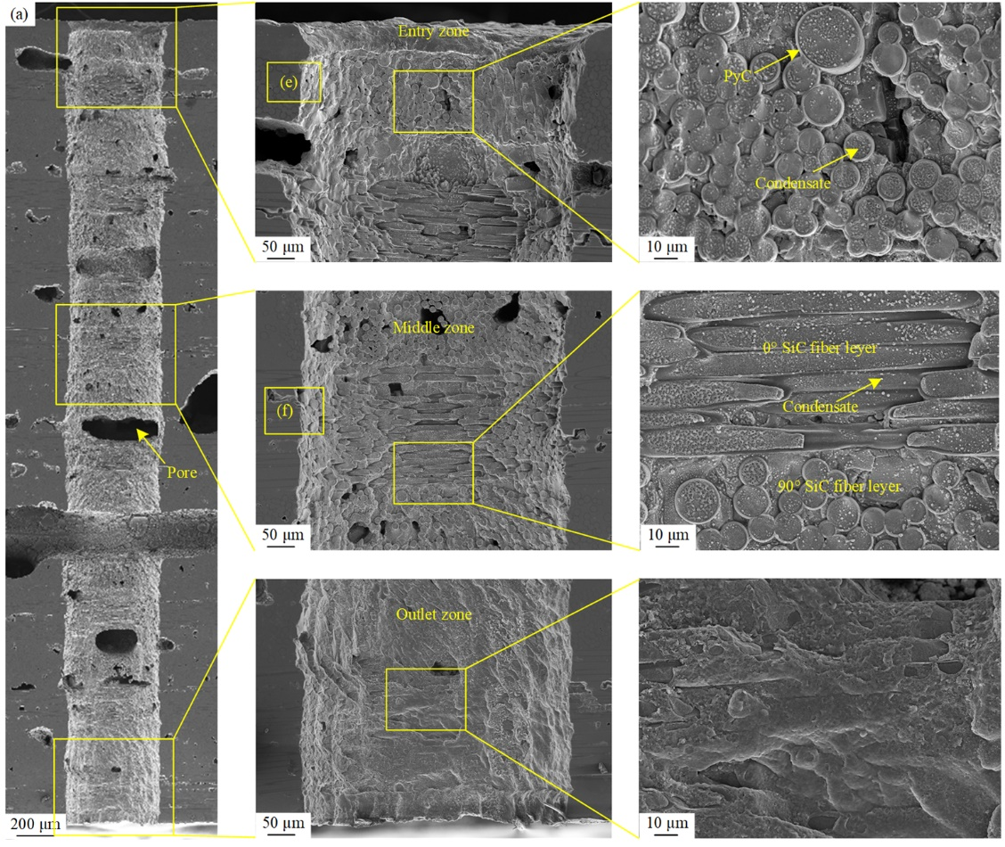 飞秒激光在抑制加工损伤和实现高精度小孔加工成果显著,而水导激光在大深径比和低氧化损伤加工上优势明显,两者优势互补,可解决SiCf/SiC陶瓷基复合材料小孔加工质量与加工效率难以兼顾的问题,为下一代先进航空发动机核心高温构件气膜孔加工提供技术支撑。
