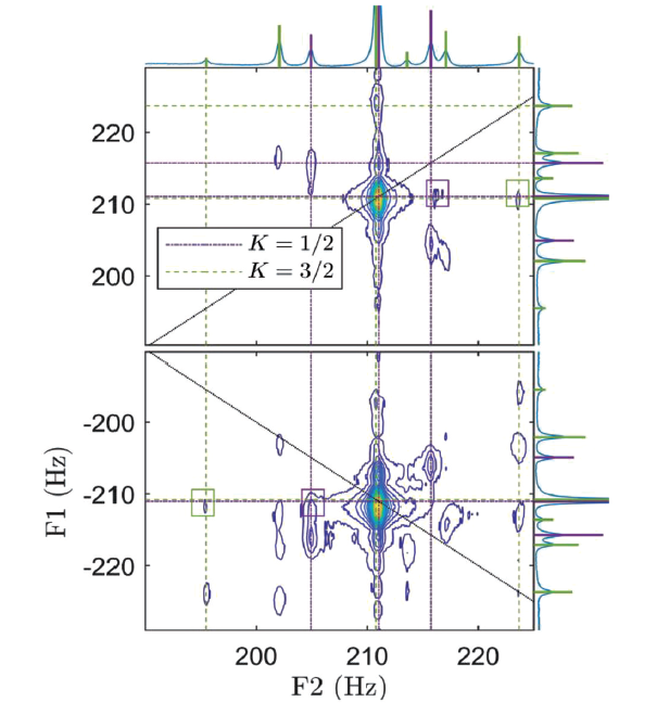 图3 1-13C乙醇ZF-TOCSY中高频多重峰的详细结构(源自Journal of Magnetic Resonance, 2020, 318: 106781)