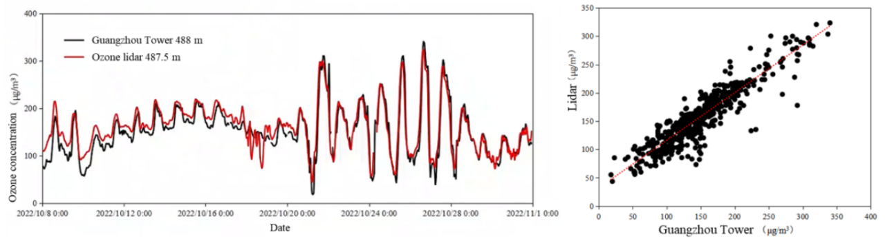 基于内腔式拉曼激光技术的臭氧激光雷达系统已在多个城市实现规模化部署和应用。在杭州亚运会期间,该系统为火种采集仪式及赛事空气质量保障提供了技术支持。搭载臭氧激光雷达的走航监测车通过多成分协同探测(如NO2、SO2等),实现了测管一体化,可以在第一时间追踪并分析污染源,为环境执法与污染溯源提供数据支撑。针对粤港澳大湾区臭氧污染的空间异质性,研究团队在香港、澳门以及广州布设了梯度观测网络,通过垂直遥感监测揭示了臭氧日变化规律与区域传输特征。在陕西咸阳、榆林等城市,由臭氧激光雷达与颗粒物激光雷达组成的立体监测网可识别污染高值区,量化评估治理措施的效果。
