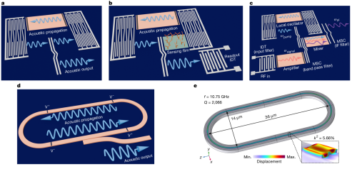 通过详细建模,还提出了器件性能的优化路径,包括在10 GHz频率下,实现了毫赫兹级线宽、高功率效率,以及小于550 μm²的器件面积。该项成果,有助于研发片上超高频声表面波源,以及无需外接射频源的微型化声表面波系统。